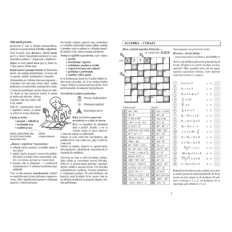 Algebra 9, Rovnice a slovní úlohy – pracovní sešit