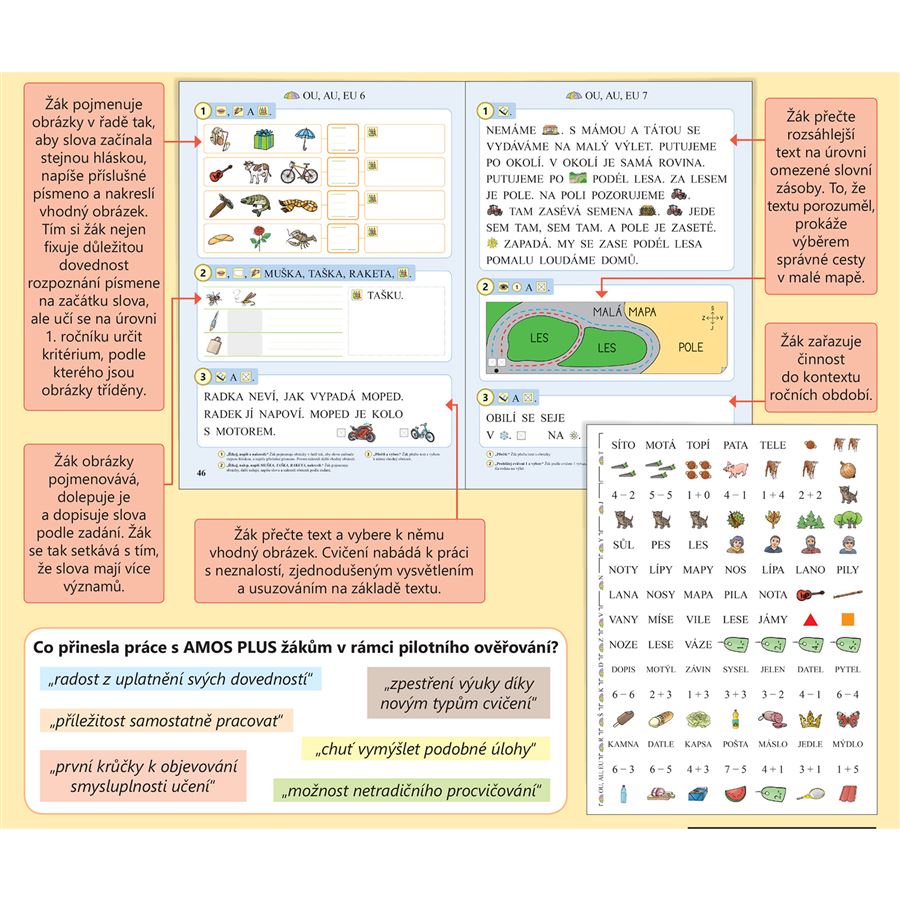V rámci uceleného souboru AMOS se mohou žáci 1. ročníku snadno seznamovat s psaním a čtením v Čteme a píšeme s Agátou, s čísly a početními operacemi v Matýskově matematice a se světem kolem nás v Oskarově prvouce.