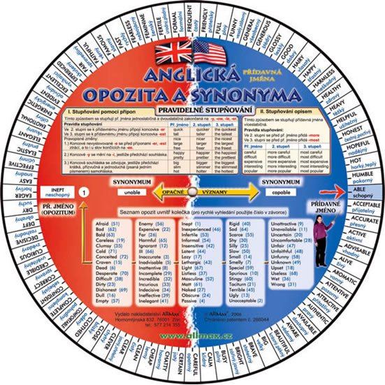 Velmi propracovaná a oblíbená oboustranná pomůcka obsahuje celkem 144 opozit a jejich synonym, jenž jsou rozmístěná na obou stranách kolečka.