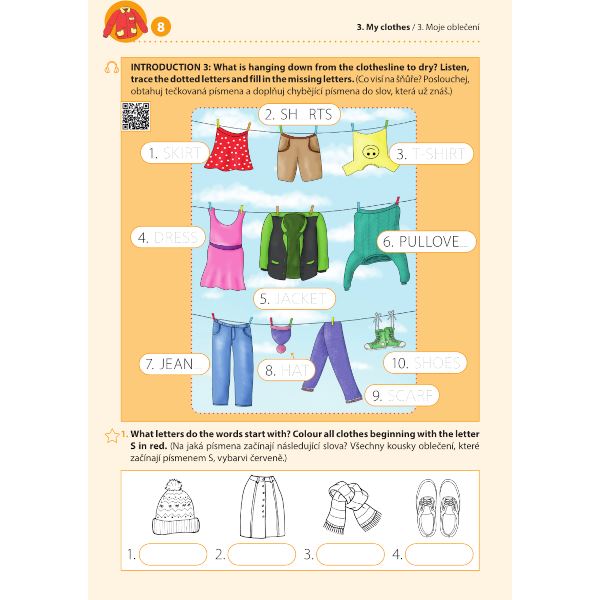 Cvičení se zaměřují na zvukovou i grafickou podobu anglického jazyka, na osvojení základní slovní zásoby a upevnění větných struktur.
