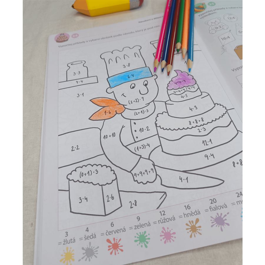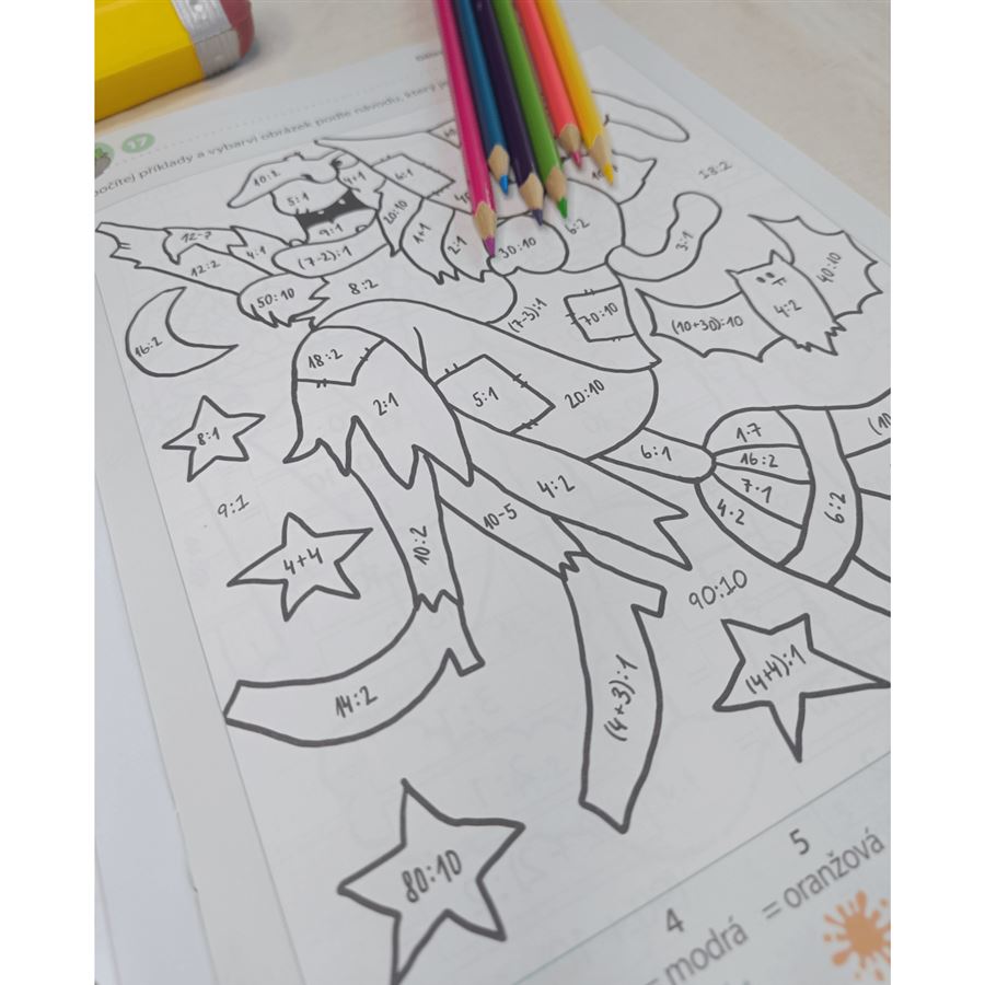 Barevné příklady jsou zaměřeny na procvičení matematiky pomocí vybarvování. Početní příklady spojené s pestrostí barev podporují logické myšlení, kreativitu a prohlubují získané matematické dovednosti. Pracovní sešit obsahuje: Sčítání a odčítání desítek Počítání se závorkami Sčítání a odčítání dvojmístných čísel Násobení a dělení jednou, dvěma, deseti Násobení a dělení třemi, čtyřmi, pěti a šesti, Geometrie