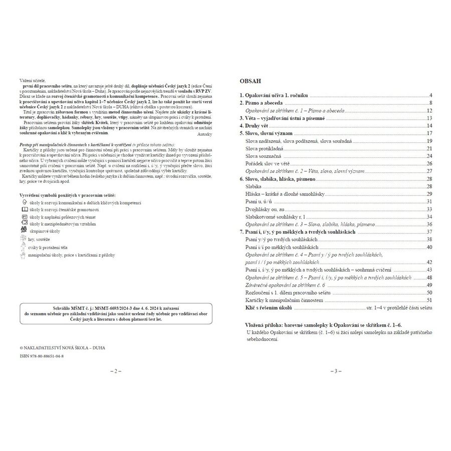 Na závěrečných stranách pracovního sešitu se nachází opakování a klíč k vybraným cvičením