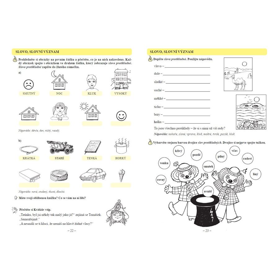 Najdete zde ukázky z krásné literatury, doplňovačky, hádanky, rébusy, hry, soutěže, vtipy, cviky k protažení těla a náměty na skupinovou práci.