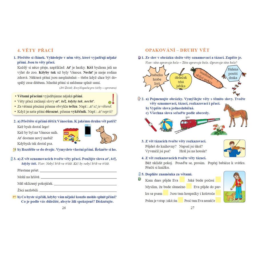 V učebnici nechybí ani hry, soutěže, náměty pro skupinovou práci a odkazy na odpovídající stranu v pracovním sešitě. Zařazeny jsou také úkoly zaměřené na etickou výchovu žáků a mezipředmětové vztahy.