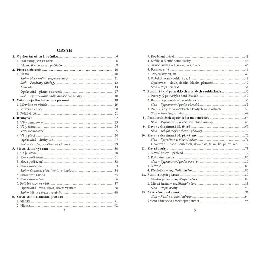 Po úvodním opakování učiva 1. ročníku následuje učivo nové, členěné do jednotlivých kapitol. Na závěr každého celku je umístěno opakování. Učebnice končí závěrečným opakováním.V učebnici najdete i řešení hádanek a náročnějších úkolů.