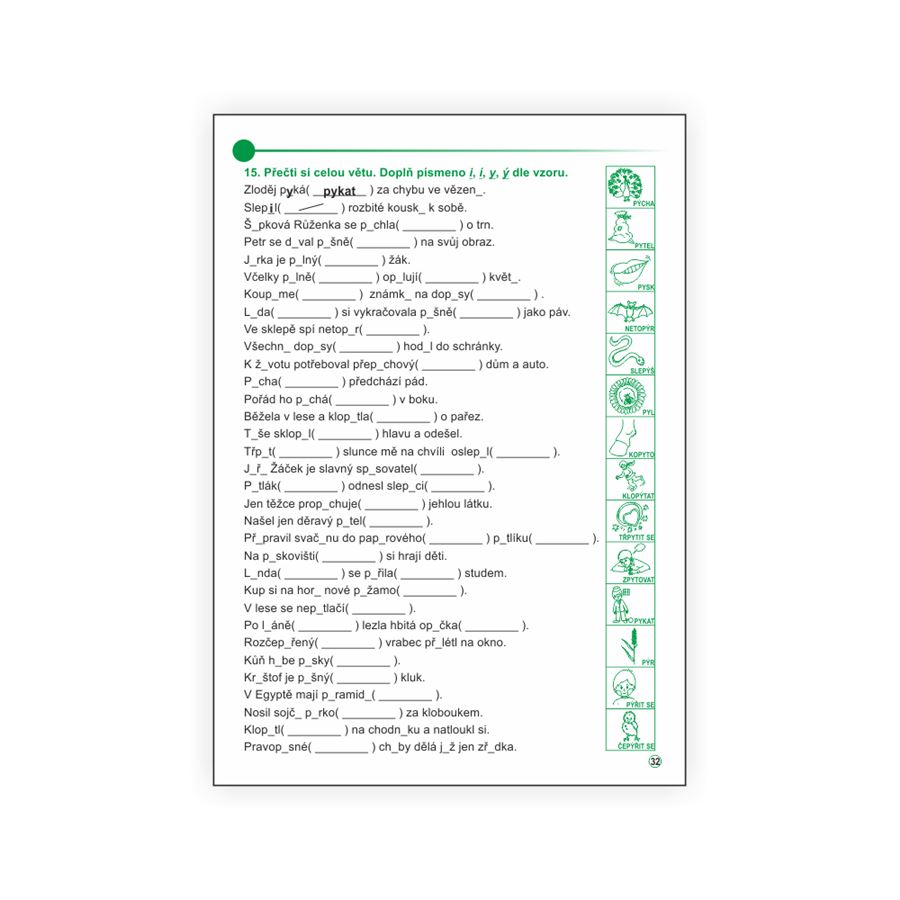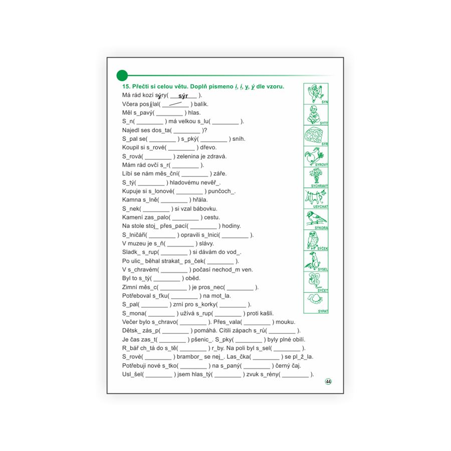 Učebnice nabízí dostatek možností pro procvičení psaní I, Í, Y, Ý v kořenu slov a opakování učiva.