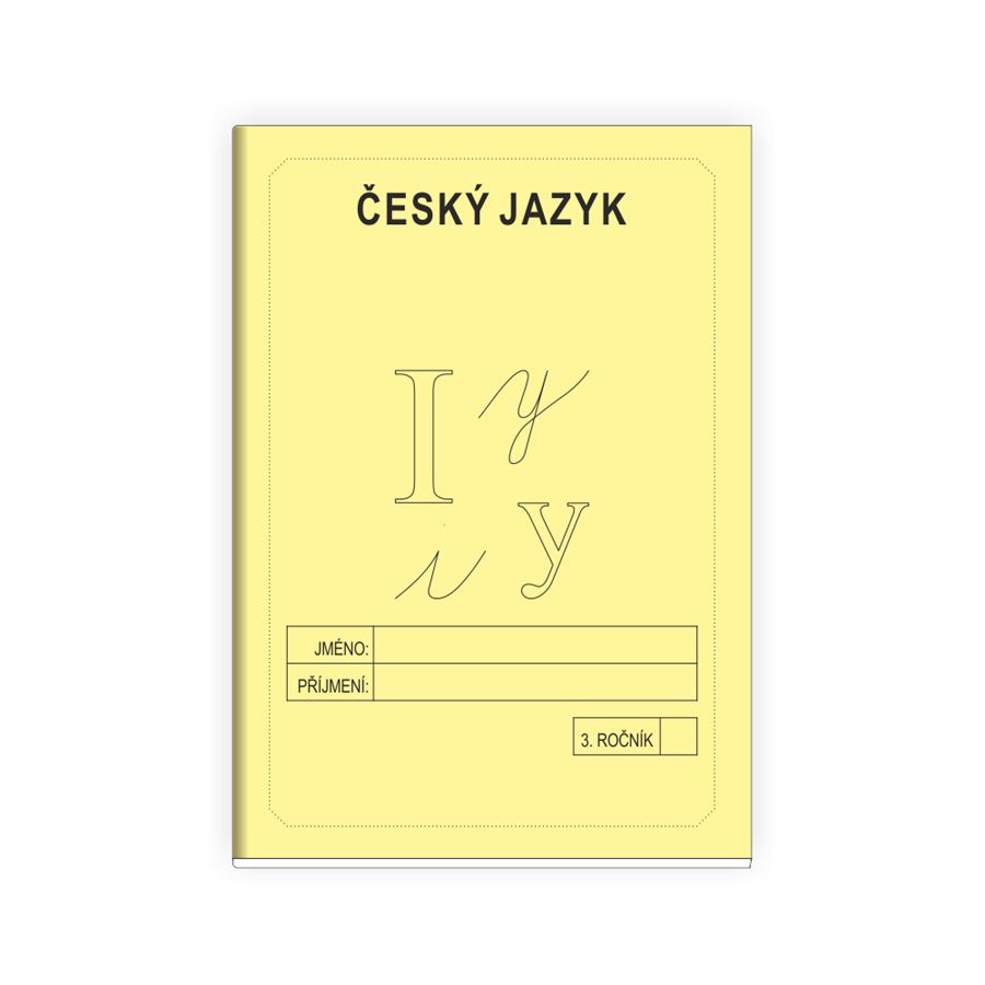 Školní sešit obsahuje stránky s řádky určené pro opisy, přepisy a diktáty.