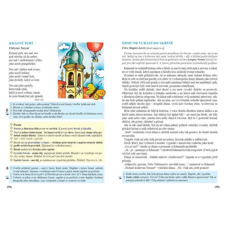 právě otvíráte čítanku, kde je pro vás, páťáky, vybráno velké množství poučných, napínavých i zábavných ukázek z děl českých i světových autorů pro děti a mládež.