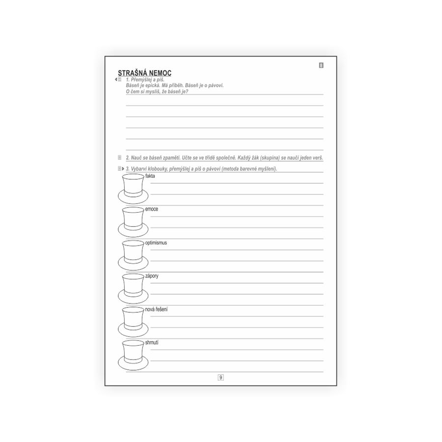 V pracovních listech je návod pro práci metodami RWTC s každým textem z učebnice Čtení 4.