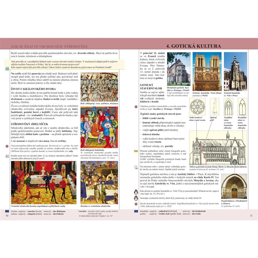 S touto učebnicí mohou žáci putovat obdobím středověku a počátkem novověku. Provede žáky prvními středověkými státy, prvními slovanskými státy až po konec třicetileté války. Učebnice se snaží žákům přiblížit způsob života lidí v raném, vrcholném a pozdním středověku (život na vesnici, zakládání měst, složení obyvatelstva, bydlení, odívání atd.). Součástí jsou návrhy projektů. Přílohou učebnice je časová přímka a mapy.