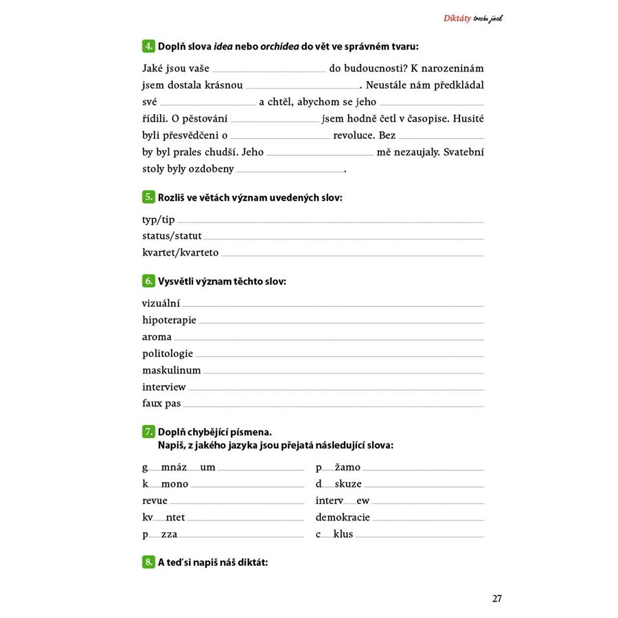 Napadlo vás někdy, že diktát se dá pojmout jiným způsobem, než na jaký jsme zvyklí? Inovativní přístup založený na správném porozumění danému gramatickému jevu je efektivní a vede k lepším výsledkům. Žák si nejprve přečte text diktátu, provede cvičení určená k zafixování pravidel a k pochopení pravopisných jevů a poté si diktát napíše. Věříme, že tento nový způsob, jak otestovat a především pochopit probíranou látku, ocení nejen pedagogové, ale také žáci a jejich rodiče.