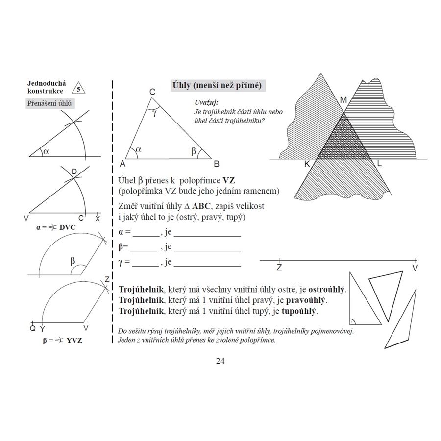 Pracovní sešit zahrnuje geometrické úkoly k procvičení učiva z učebnice Geometrie 6, rýsování.