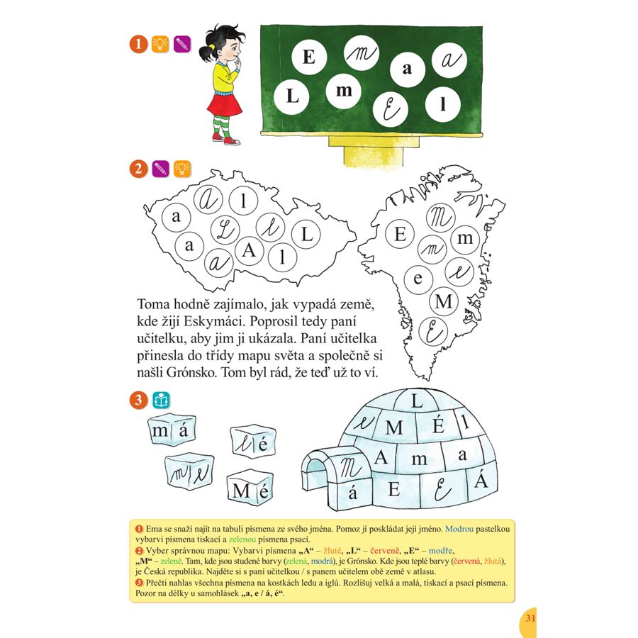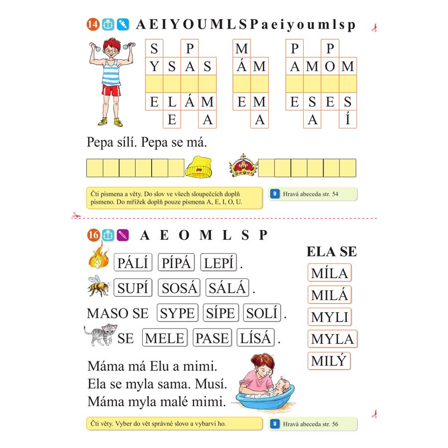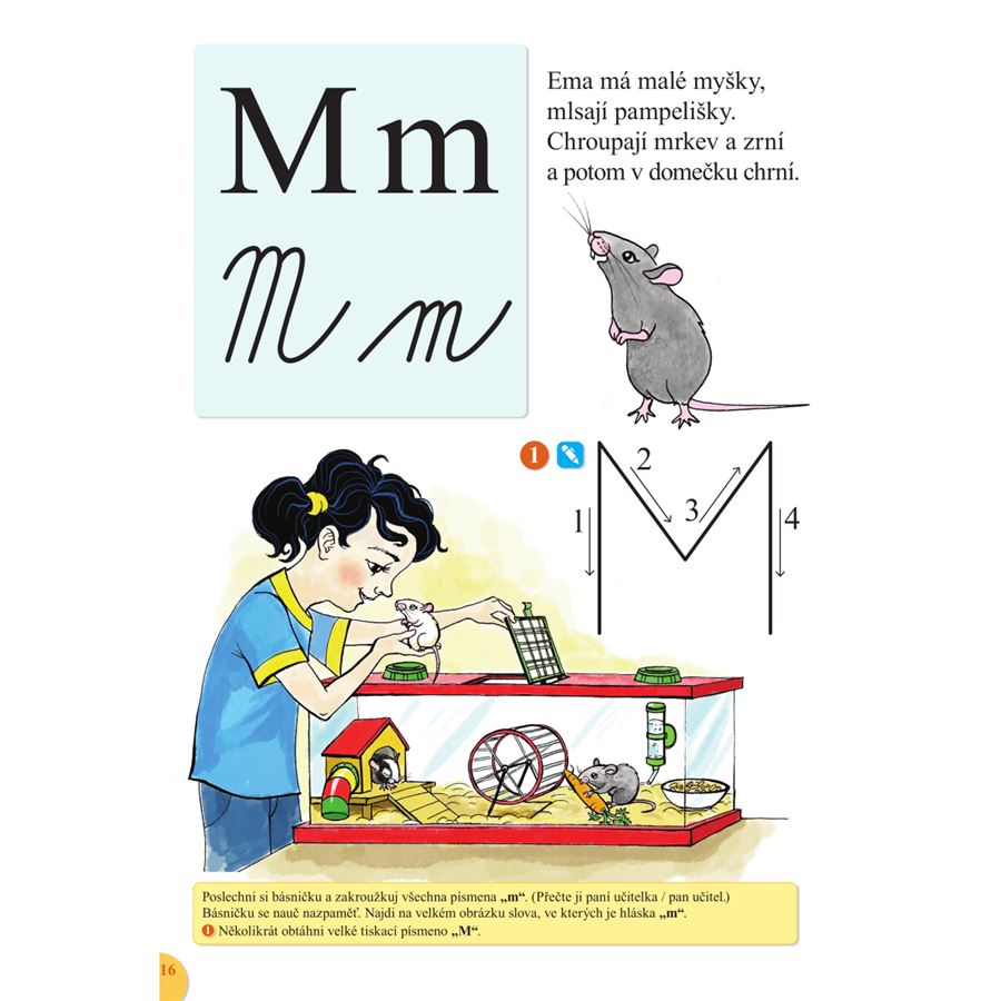 Pracovní učebnice obsahuje hravá cvičení k osvojení prvních písmen abecedy, která se děti učí na začátku první třídy analyticko-syntetickou metodou. Součástí jsou grafomotorická cvičení. K motivaci žáků přispívá originální prostředí vodnické třídy a zábavné říkanky. Pracovní sešit je součástí ucelené koncepce pro výuku českého jazyka na 1. stupni základních škol. V rámci této koncepce si učitelé mohou doplnit tradiční učebnice a pracovní sešity o další pomůcky, které komplet dotvářejí. Moderní a plnobarevný design podporuje motivaci a kreativitu žáků. Pestré typy úloh slouží žákům k procvičování probíraného učiva hravou a zábavnou formou. Pracovní sešit vhodně doplňuje Hravý slabikář a Hravá čítanka 1. K procvičování psaní je vhodné doplnit pracovní sešit písankami. Sešit je rozdělen do dvou oddílů: nácvik čtení a nácvik grafomotoriky. Pracovní sešit obsahuje hravá cvičení k osvojení prvních písmen abecedy, která se děti naučí na začátku první třídy analyticko-syntetickou metodou. K motivaci žáků přispívá originální prostředí vodnické třídy. Úkoly doprovázejí básničky a říkanky.