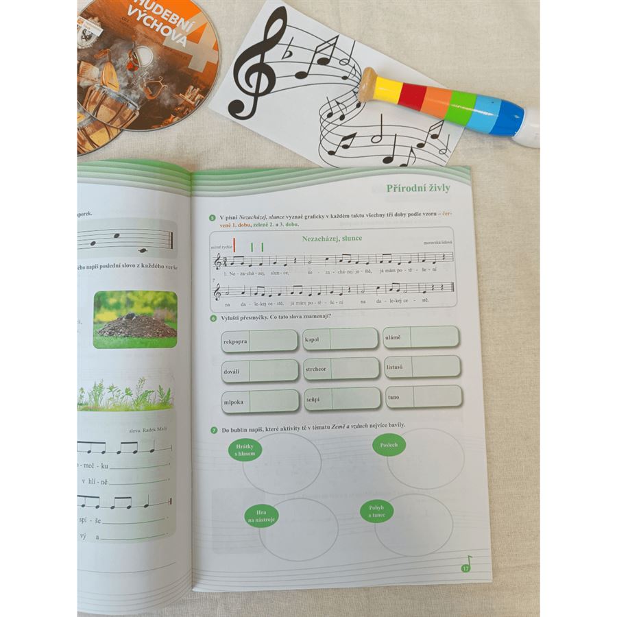 Doplňuje učebnici a umožňuje žákům si formou rozmanitých úloh důkladně a zábavně procvičit hudebněnaukové učivo. Obsahuje mnoho námětů k činnostem, z nichž může učitel/ka vybírat, a je tedy možno s publikacemi kreativně pracovat.