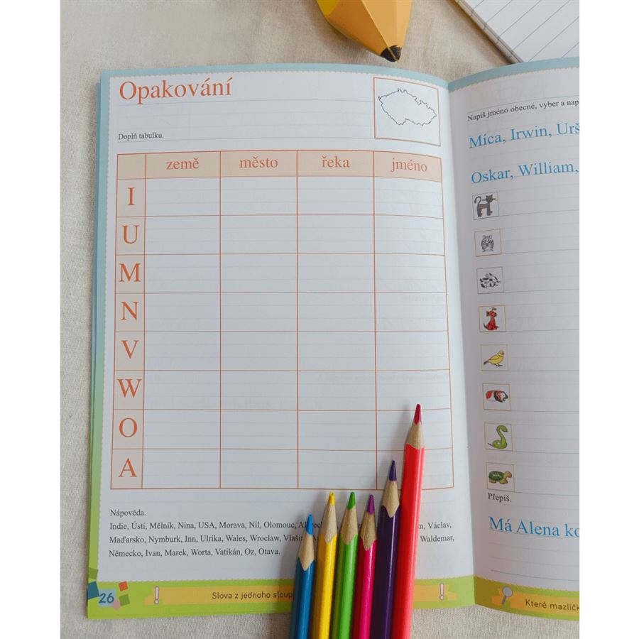 Každá strana je doplněna několika úkoly zaměřenými nejen na psaní, ale také na celkový rozvoj žáků
