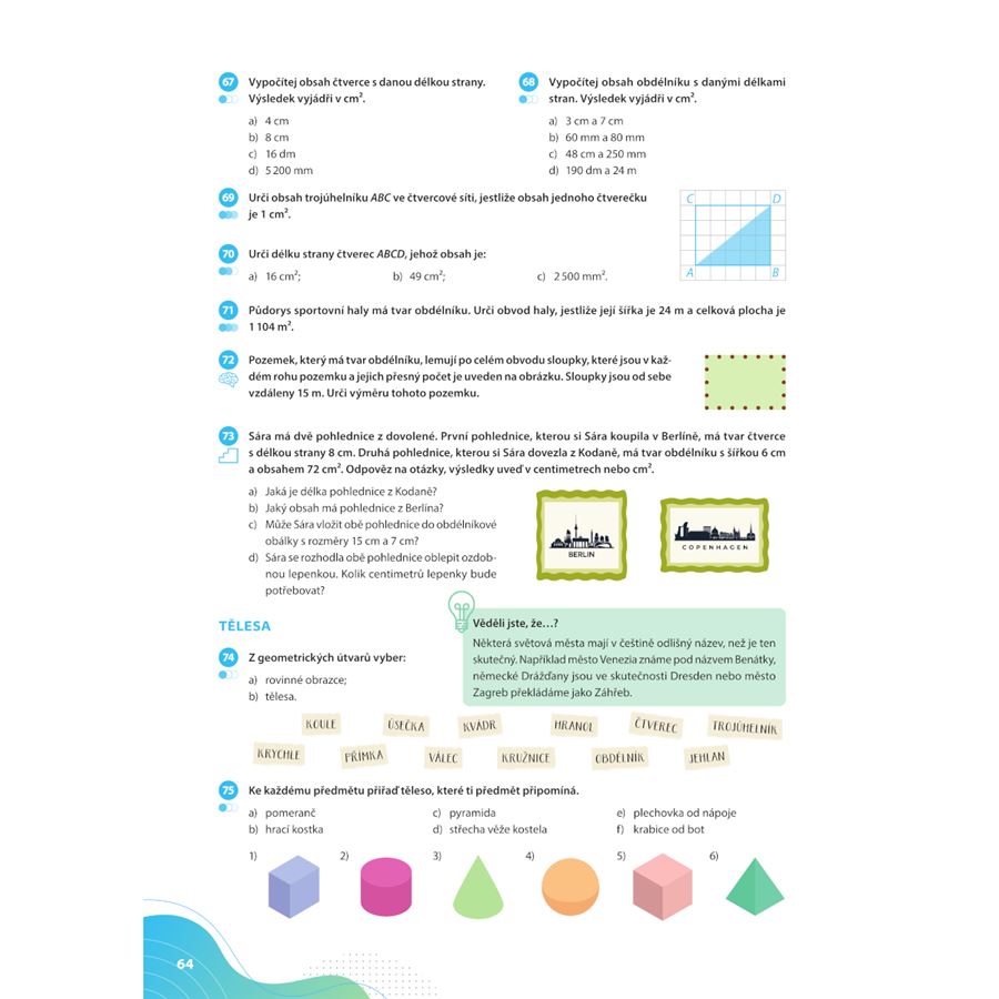 Barevně odlišené kapitoly: Klasické úlohy i hravé výzvy, které procvičují matematické poznatky v netradičních kontextech.