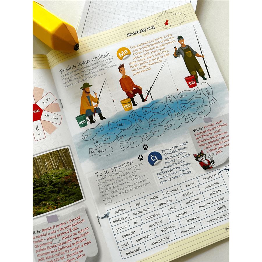 Při řešení rozličných osmisměrek, čtyřsměrek, křížovek, rébusů, přesmyček, bludišť a dalších zajímavých úkolů se děti nejen pobaví a upevní si své dosavadní vědomosti, ale také získají řadu nových poznatků z oblasti České republiky.