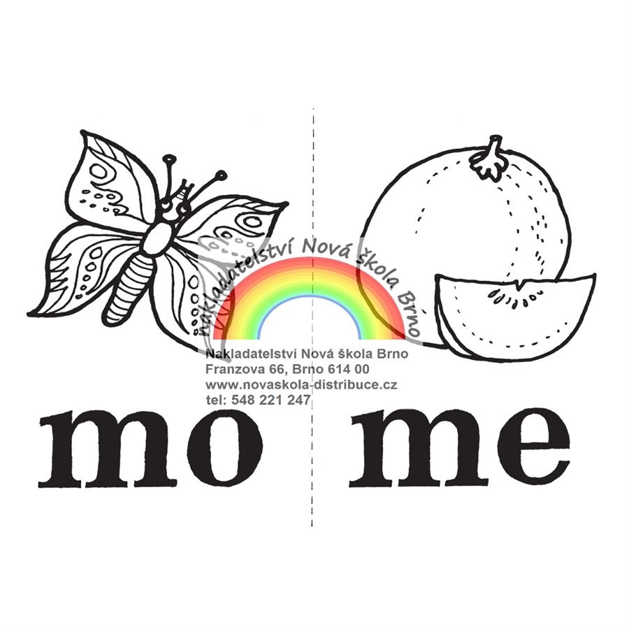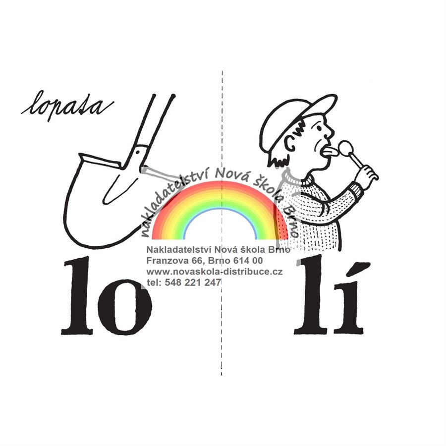 Vzhled stany: Černobílý obrázek, který znázorňuje slovo na danou slabiku - například: lo - lopata (obrázek je možné vymalovat) a dále pak slabiku napsanou malými tiskacími písmeny. Na některých kartách je dané slovo pro jistotu a pochopení nad obrázkem i napsané psacím písmem (např. lopata, lupa, máma, táta) – slovo není určené pro čtení dětmi (případně jen pro nadané žáky).