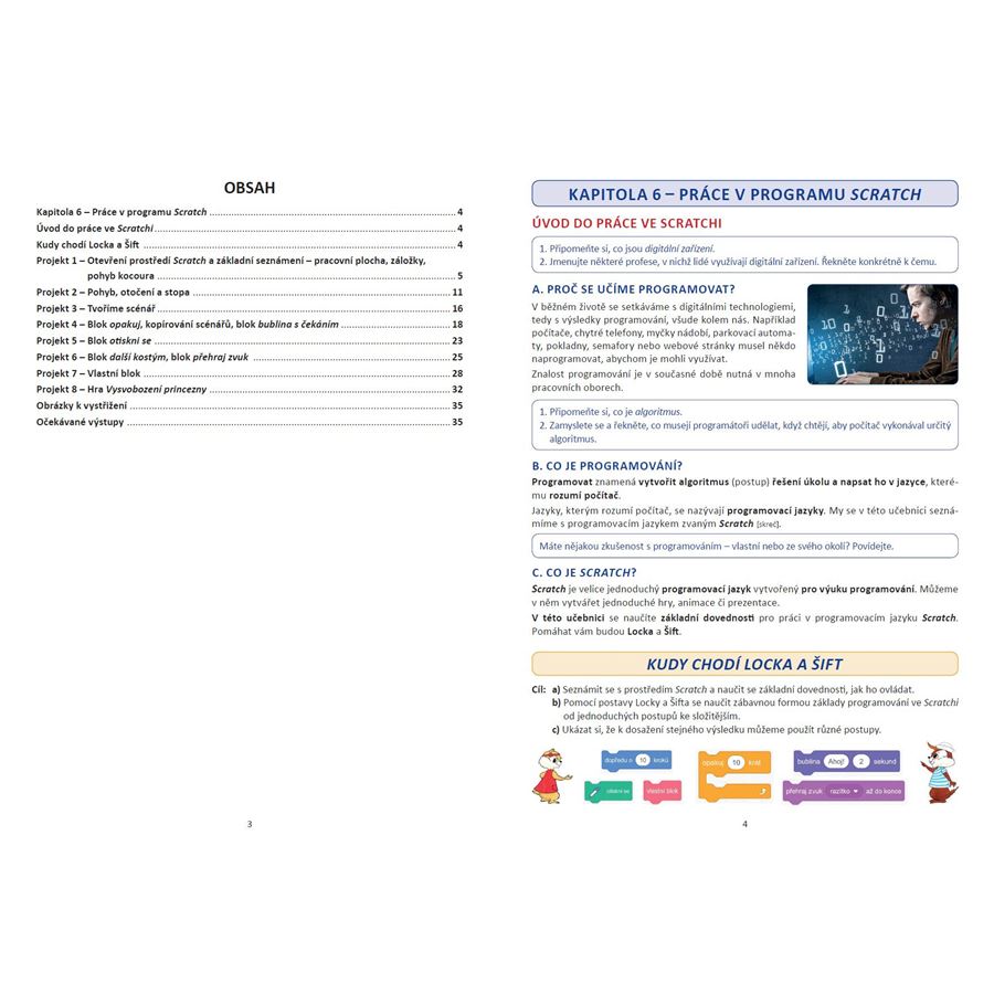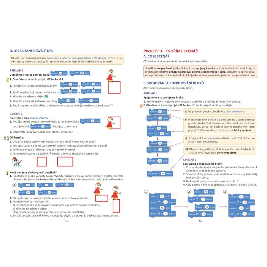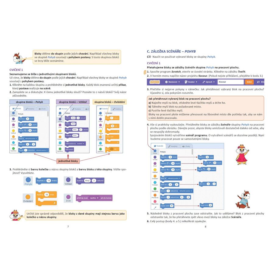 Žáci se v učebnici seznámí s programovacím jazykem Scratch.