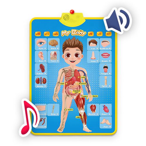 Plakát reaguje na dotek - po stisknutí příslušného tlačítka přehraje konkrétní nahrávku pořízenou rodilým mluvčím. Ten buď pojmenuje daný orgán či část lidského těla, podělí se o krátkou informaci nebo zajímavost, příp. položí kvízovou otázku - záleží na zvoleném režimu. Interaktivní poster jich obsahuje pět, přičemž každý režim nabízí možnost samostatně a zábavným způsobem zdokonalovat znalosti nejen z anatomie, ale také z anglického jazyka. K tomu určitě napomohou i chytlavé dětské písničky, mezi nimiž nemůže chybět známá Head, Shoulders, Knees and Toes – tedy Hlava, ramena, kolena a palce.