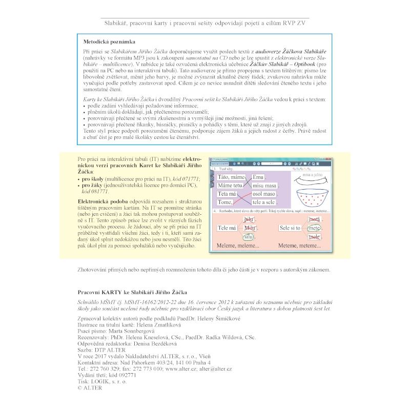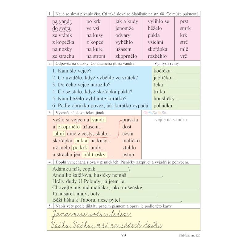 30 přehledných oboustranných barevných karet obsahuje slova pro nácvik čtení s porozuměním,