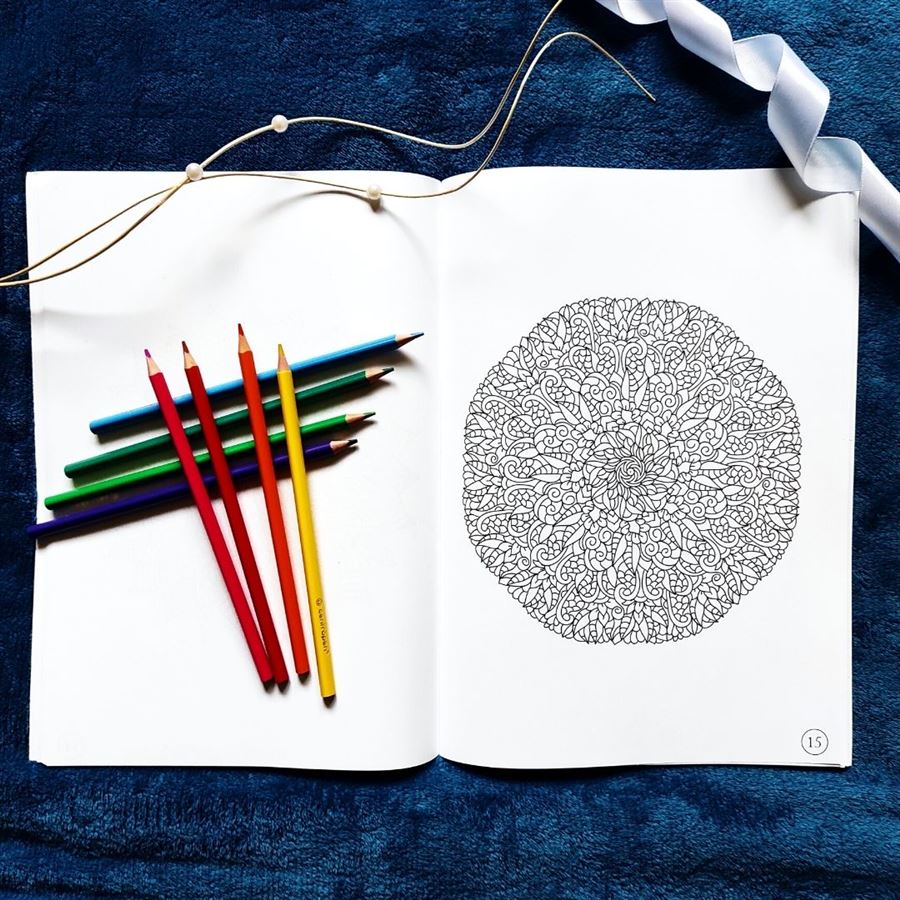 Mandaly jako magické úkazy mají relaxační účinky a vyvolávají pocit harmonie. To všechno se děje otáčením jednotlivých stránek antistresových omalovánek Keep calm and draw.