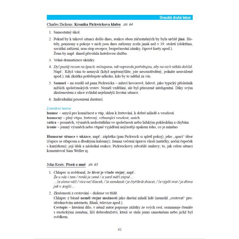 Tato příručka přináší řešení úkolů zadaných v sešitě Literární výchova 8 ALTER. Titul slouží žákům a studentům jako podpora pro samostatnou práci a nabízí mnoho podnětů pro další úvahy nad přečtenými texty. Elektronická verze umožňuje tisk jednotlivých stran.