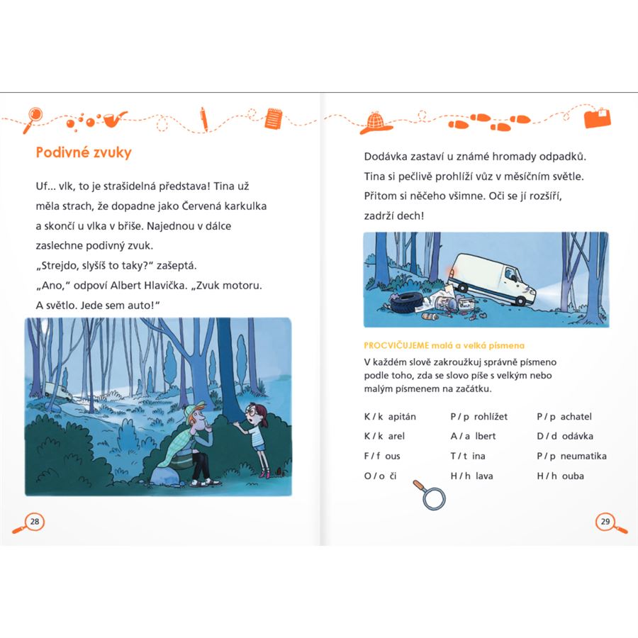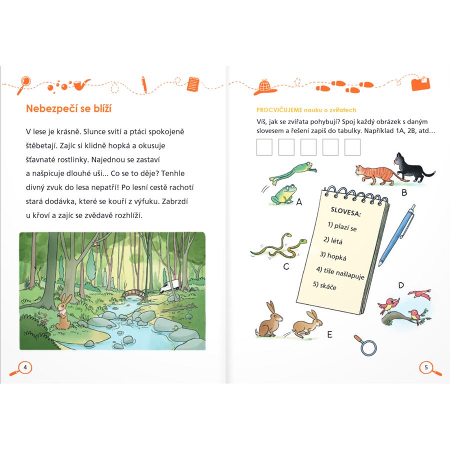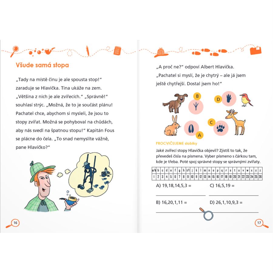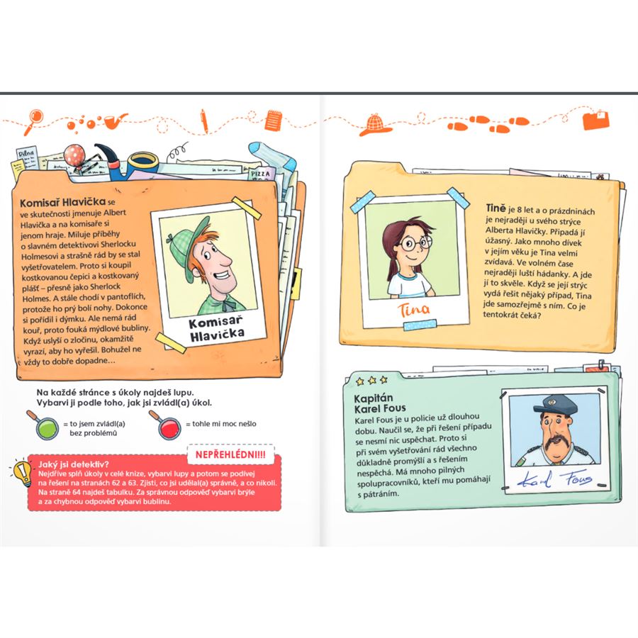 Děti si užijí detektivní zápletku a při řešení úkolů si procvičí čtení, češtinářské dovednosti, postřeh, logické myšlení nebo prostorovou představivost.