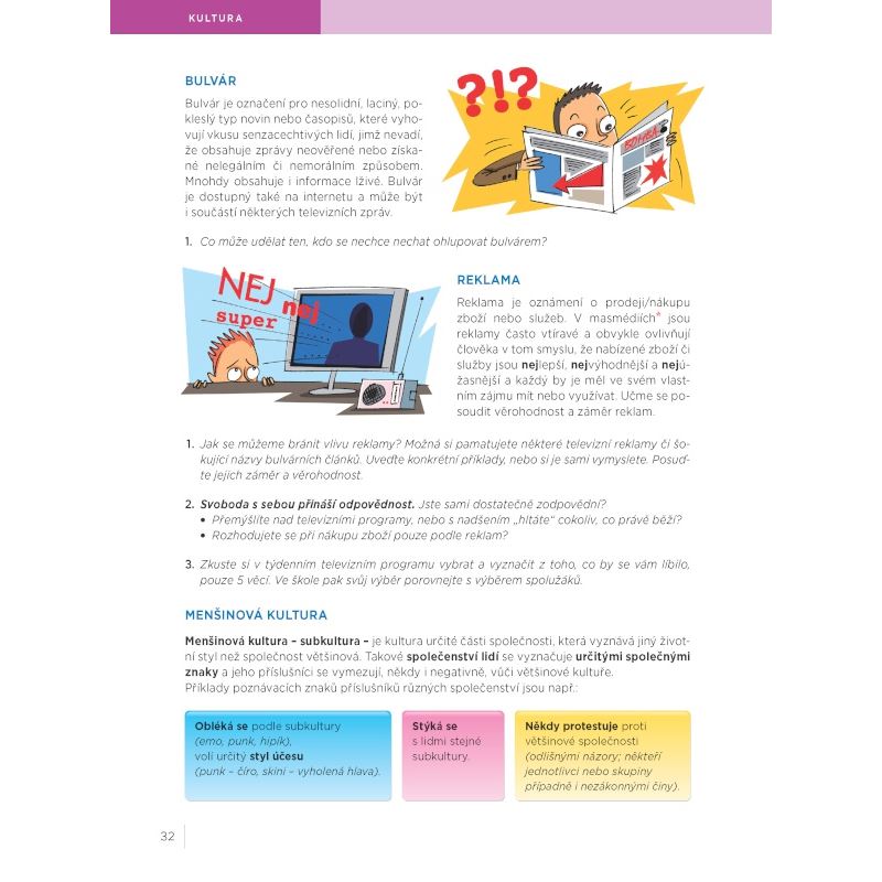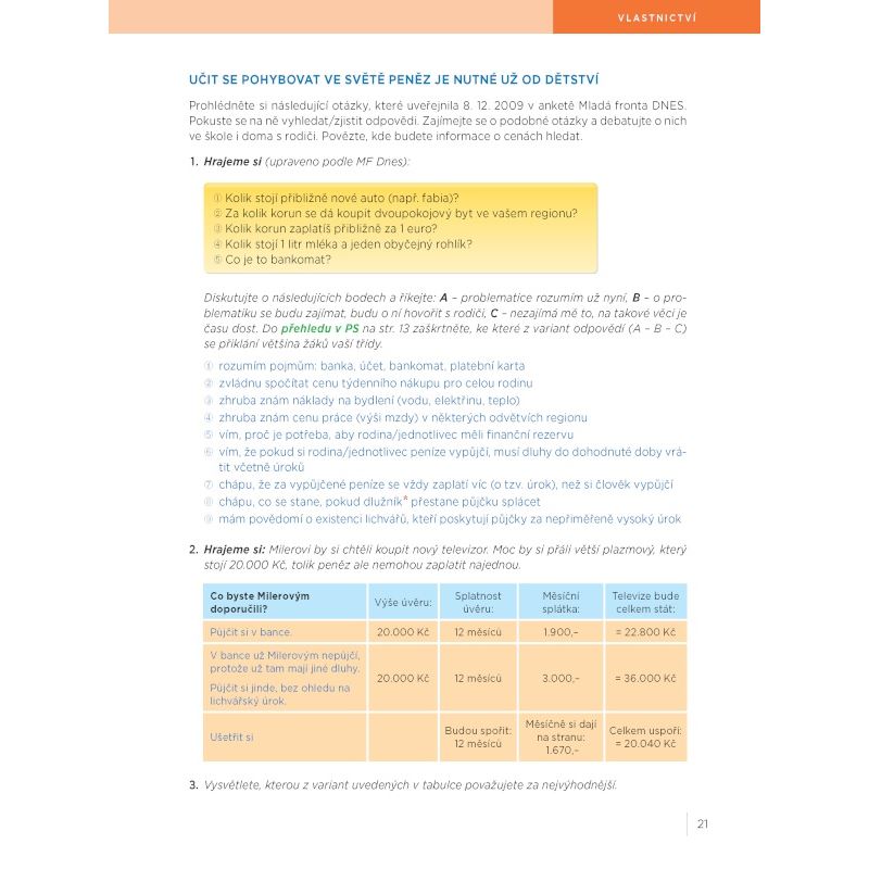 Do učebnice jsou zařazeny konkrétní nebo modelové situace formou drobných příběhů,