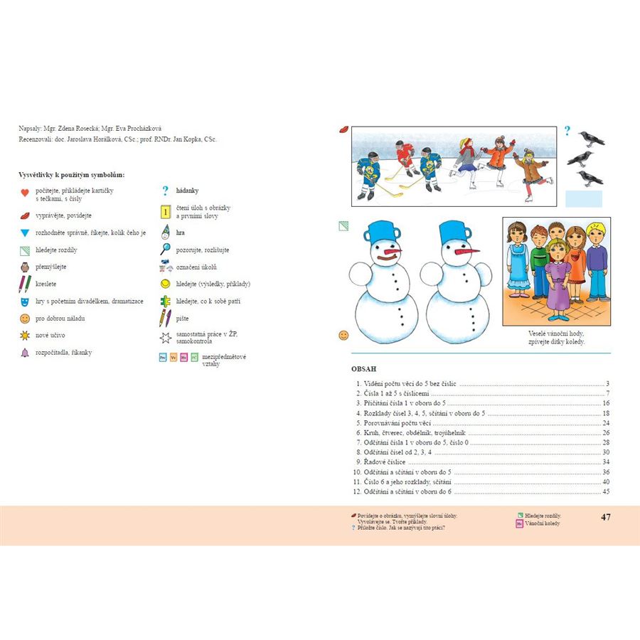 Učebnice je koncipována tak, aby žáci vnímali matematiku jako snadný a zajímavý předmět. Postupně jsou vedeni k vnímání počtu věcí do 10 a k vytváření správných matematických představ o sčítání a odčítání. K matematickým poznatkům žáci dospívají vlastní praktickou činností. Také zobrazené úlohy se týkají jejich reálného života. Podnětné ilustrace inspirují žáky k vymýšlení matematických příběhů. K učebnici MATEMATIKA 1, 1. DÍL patří pracovní sešit ŽIVÉ POČÍTÁNÍ 1. DÍL.
