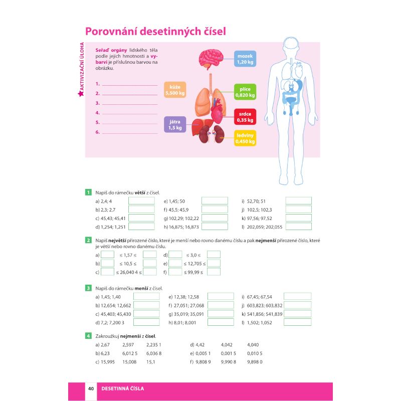 Nová koncepce pracovních sešitů. Tato řada se liší od pracovních sešitů Hravá matematika především redukcí hravých úloh a větším důrazem na počet příkladů k procvičení. Grafické zpracování je účelné. Každá kapitola je rozdělena na několik podkapitol, které začínají aktivizační úlohou. Cílem těchto úloh je ukázat žákům, kde se mohou s probíranou problematikou setkat v běžném životě. Na tvorbě pracovního sešitu se podílel široký kolektiv učitelů s bohatými teoretickými znalostmi i praktickými zkušenostmi z vyučování matematiky. Je součástí ucelené řady učebnic, pracovních sešitů a početníků - Hravá matematika a Matematika V Pohodě pro 2. stupeň ZŠ a víceletá gymnázia. Na začátku každé kapitoly se nachází několik prázdných stran na poznámky žáků. Čísla všech příkladů jsou v barevných rámečcích. Zelené rámečky 1 označují nejjednodušší příklady, modré rámečky 3 značí střední obtížnost a červená barva 5 je přidělena náročným úlohám. Každá kapitola je zakončena testem (test vždy obsahuje variantu A a variantu B). Jednotlivé testy budou žáky postupně připravovat na ostré varianty testů, které je čekají u přijímacích zkoušek na střední školu. Na konci každé podkapitoly (vyjma té první) se na kraji stránky nachází rámeček s opakovacími příklady z předešlých podkapitol.