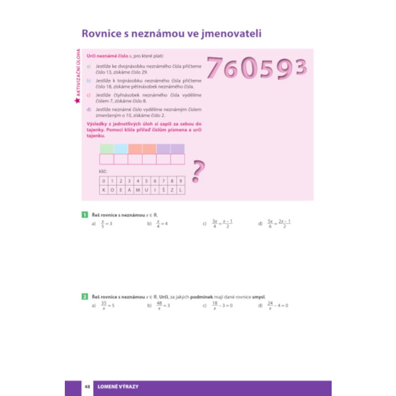 Nová koncepce pracovních sešitů. Tato řada se liší od pracovních sešitů Hravá matematika především redukcí hravých úloh a větším důrazem na počet příkladů k procvičení. Grafické zpracování je účelné. Každá kapitola je rozdělena na několik podkapitol, které začínají aktivizační úlohou. Cílem těchto úloh je ukázat žákům, kde se mohou s probíranou problematikou setkat v běžném životě. Na tvorbě pracovního sešitu se podílel široký kolektiv učitelů s bohatými teoretickými znalostmi i praktickými zkušenostmi z vyučování matematiky. Je součástí ucelené řady učebnic, pracovních sešitů a početníků - Hravá matematika a Matematika V Pohodě pro 2. stupeň ZŠ a víceletá gymnázia.