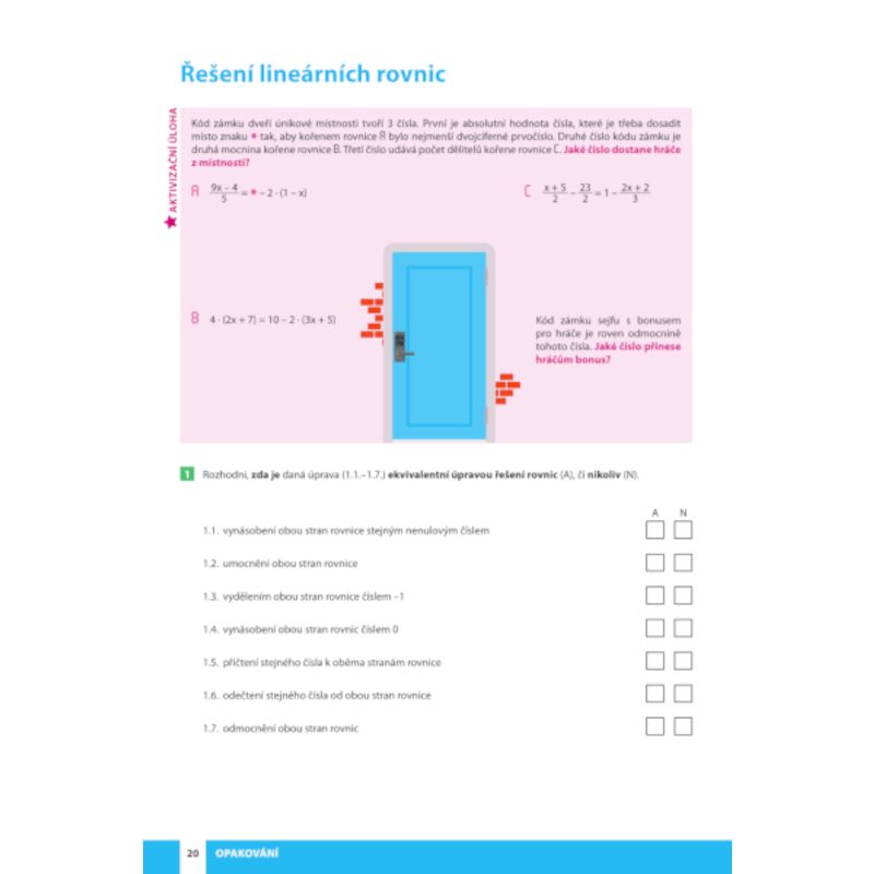 Na konci každé podkapitoly (vyjma té první) se na kraji stránky nachází rámeček s opakovacími příklady z předešlých podkapitol.