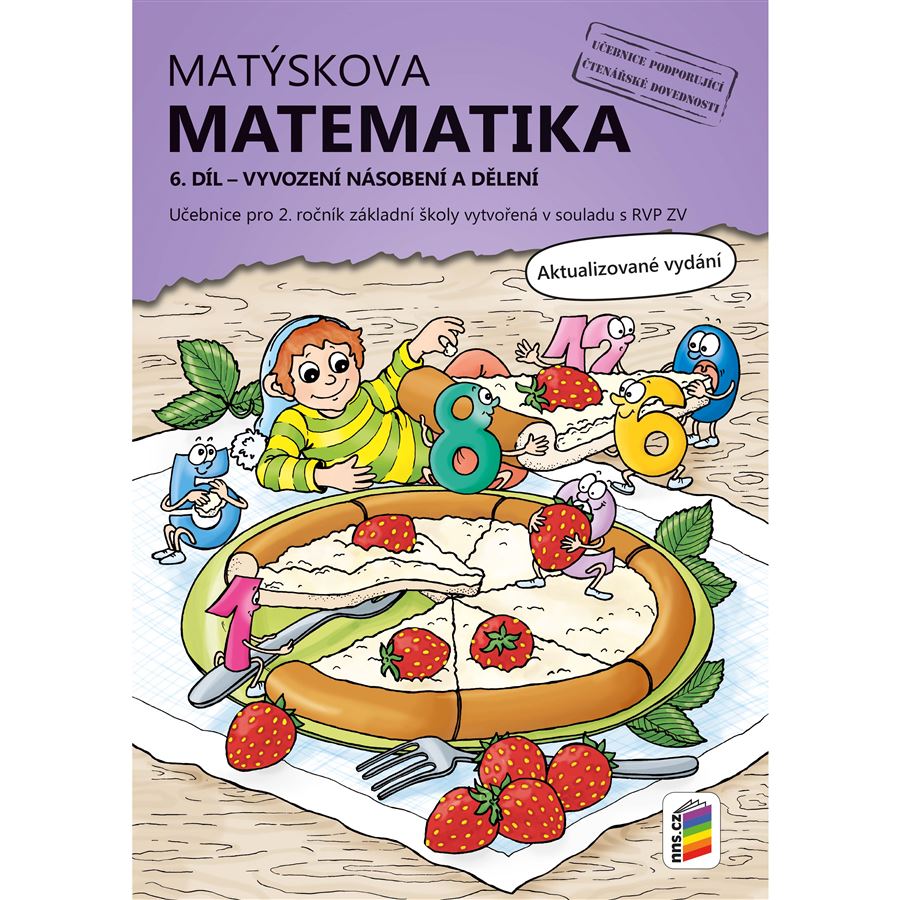 Nová učebnice matematiky pro 2. ročník ZŠ podporující čtenářskou dovednost. Pro 2. ročník je určen 4., 5. a 6. díl Matýskovy matematiky. Šestý díl Matýskovy matematiky doporučujeme zařadit do výuky jako závěrečný díl matematiky ve 2. ročníku. V případě, že ŠVP nepočítá s výukou násobilky a dělení v plném číselném rozsahu, nebo v případě, že výuka matematiky bude postupovat pomaleji, není nutné probrat tento díl na konci 2. ročníku celý. Šestý díl Matýskovy matematiky je strukturován tak, aby vyučující ve 2. ročníku mohl probrat jen jeho část a ke zbývající neprobrané části se mohl vrátit na začátku 3. ročníku.