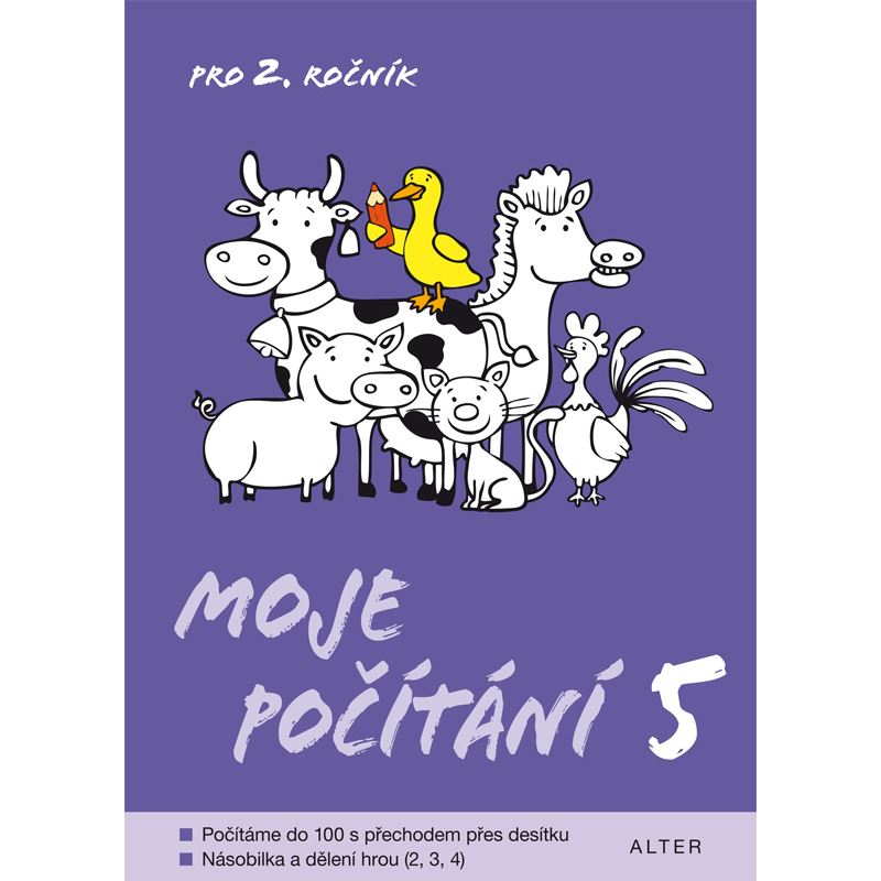 Pracovní sešit Moje počítání 5 propojuje procvičování početních operací v oboru do 100 s přechodem přes desítku s úvodním osvojováním principů násobení a dělení (čísly 2, 3, 4). Úlohy podporují rozvoj flexibilních početních strategií a postupné porozumění násobení jako opakovanému sčítání a dělení jako rozdělování či seskupování.
