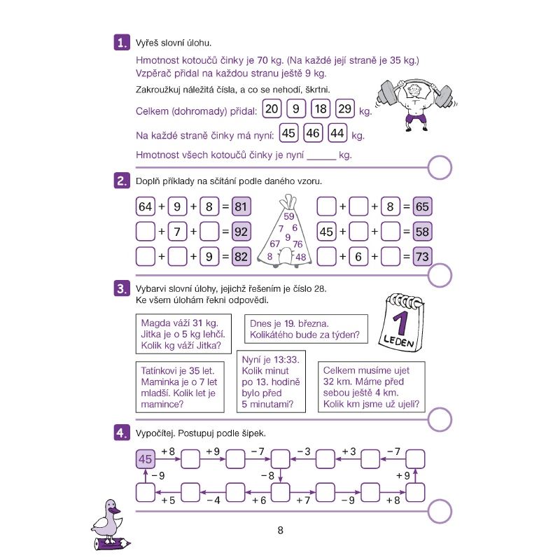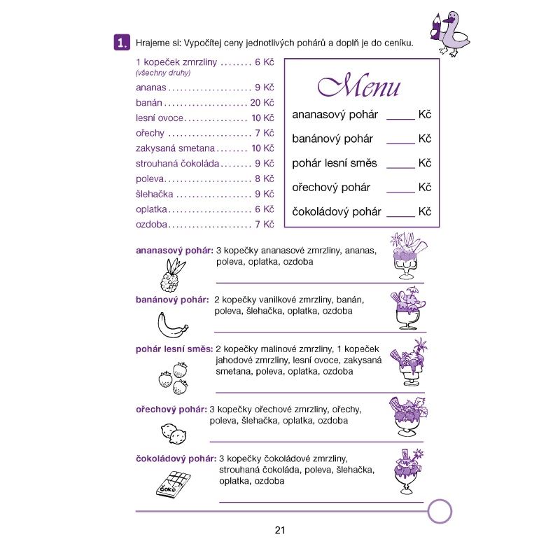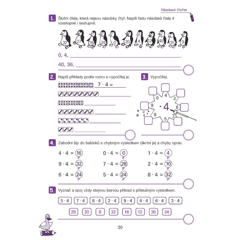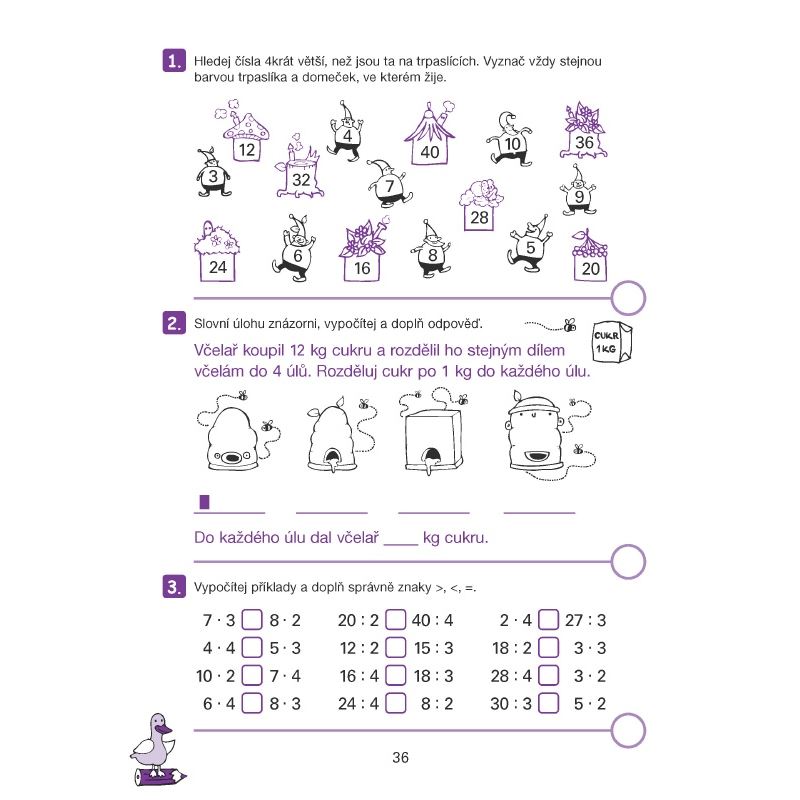 Metodická koncepce pracuje s různými reprezentacemi matematických situací a nabízí pestrou skladbu aktivit, které vedou k hlubšímu pochopení aritmetických vztahů. Zábavné formy úloh, včetně práce s obrázky, vybarvování, spojování prvků či doplňování, pomáhají žákům překlenout náročnější fázi přechodu k násobení a dělení.