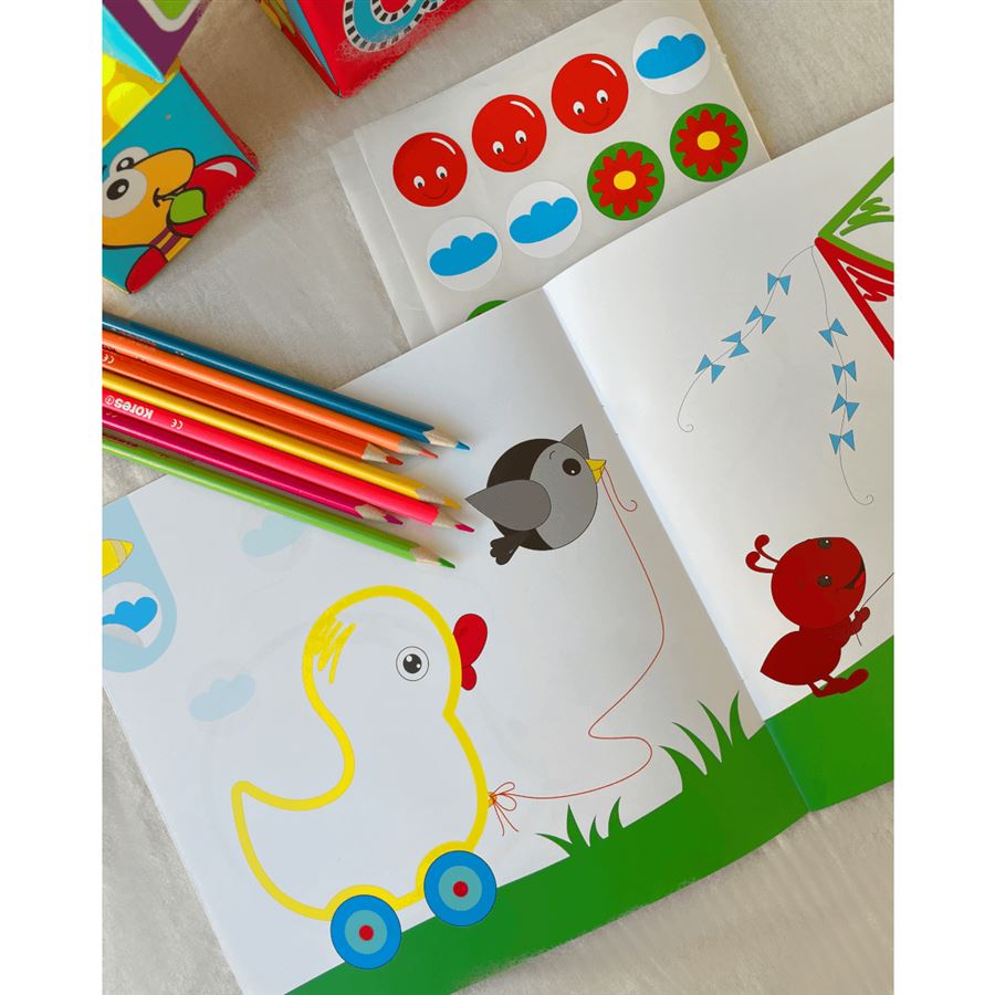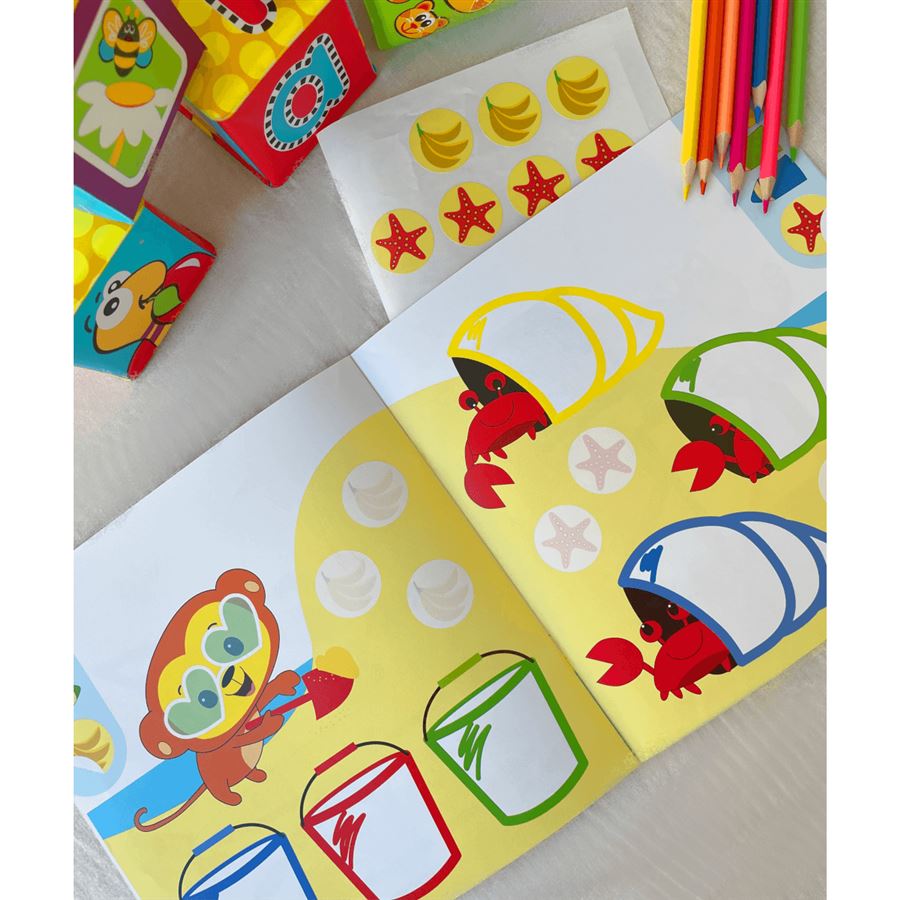 Kniha je určena pro děti od 2 let, má 16 stran a uprostřed je arch se 40 kulatými samolepkami s obrázky.