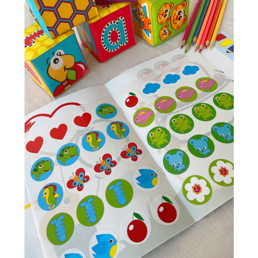 Kniha je určena pro děti od 2 let, má 16 stran a uprostřed je arch se 40 kulatými samolepkami s obrázky.