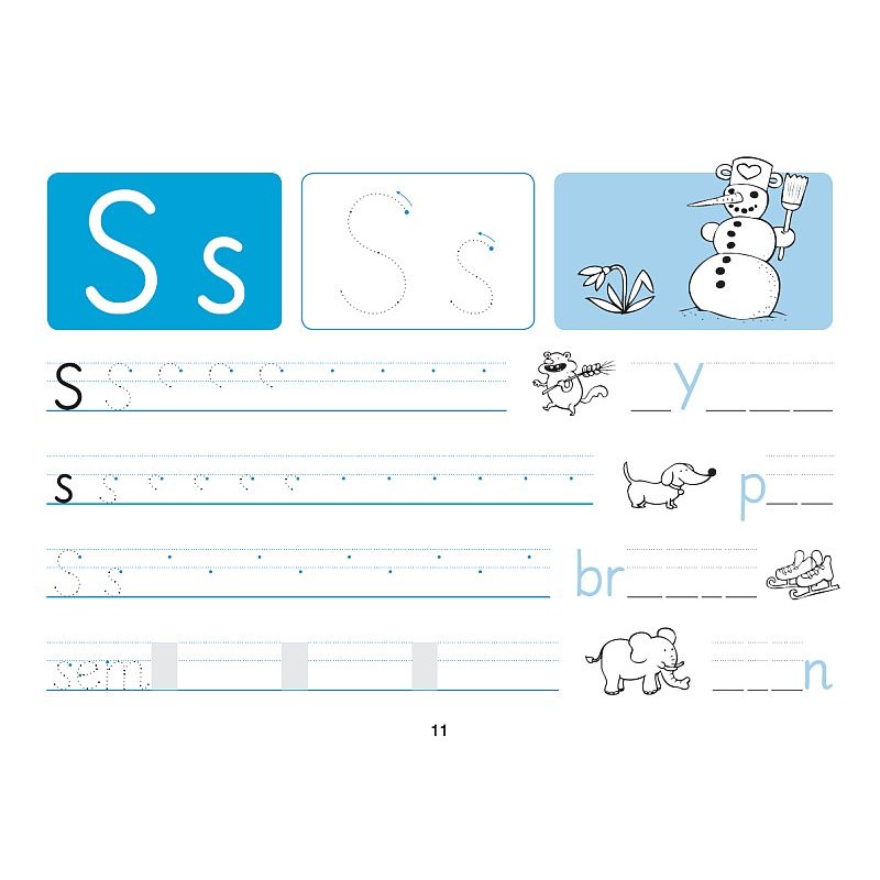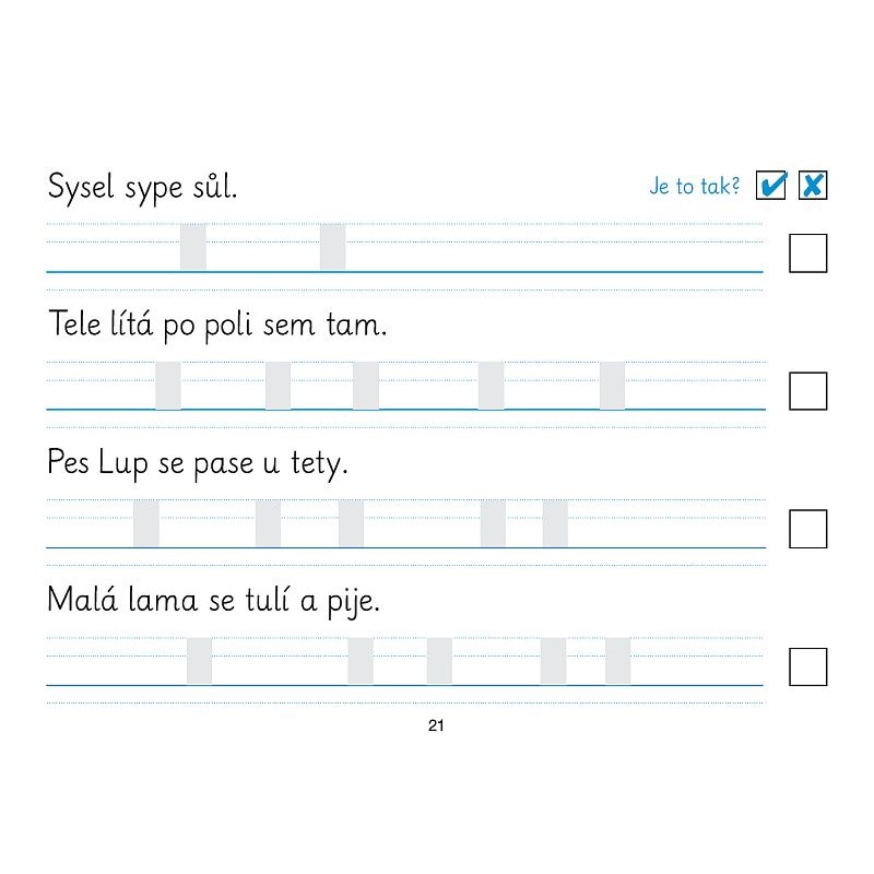a jejich užití ve slabikách, slovech a větách. Obsahuje také nácvik číslic,