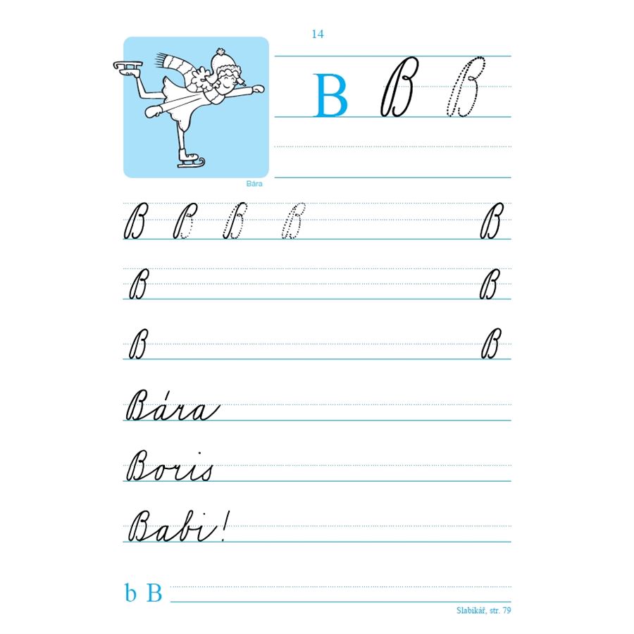 pomocnou linkovanou podložku pro psaní a tabulku s tiskacími a psacími písmeny.