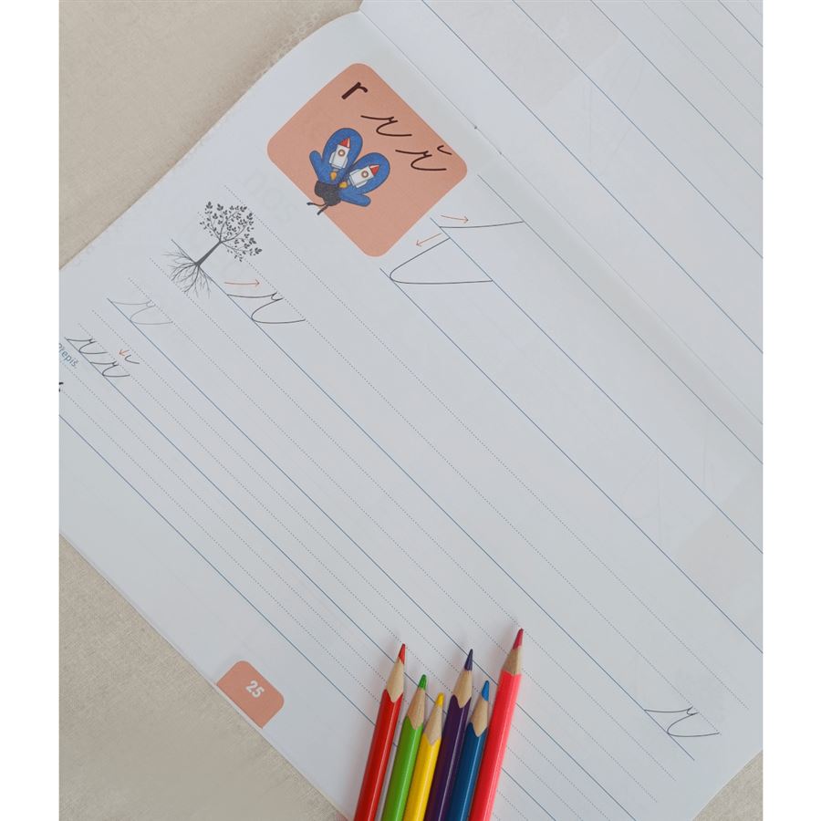Žáci si v ní nejprve zopakují základní cviky na uvolnění ruky a poté se seznámí s jednotlivými malými psacími písmeny, která již brzy spojují do slov.