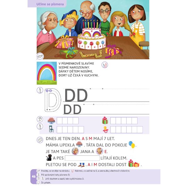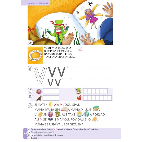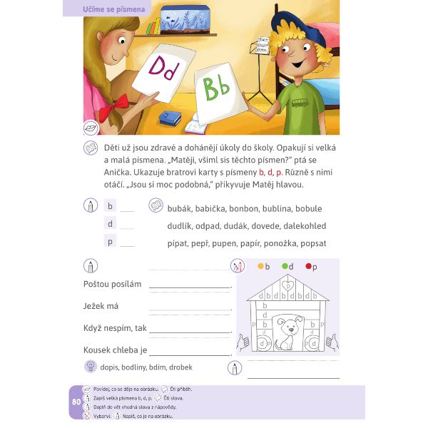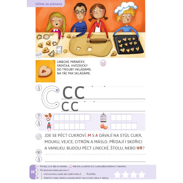 Všechna cvičení pracují pouze s písmenky, která žáci již znají, aby pro ně práce byla přiměřeně náročná.