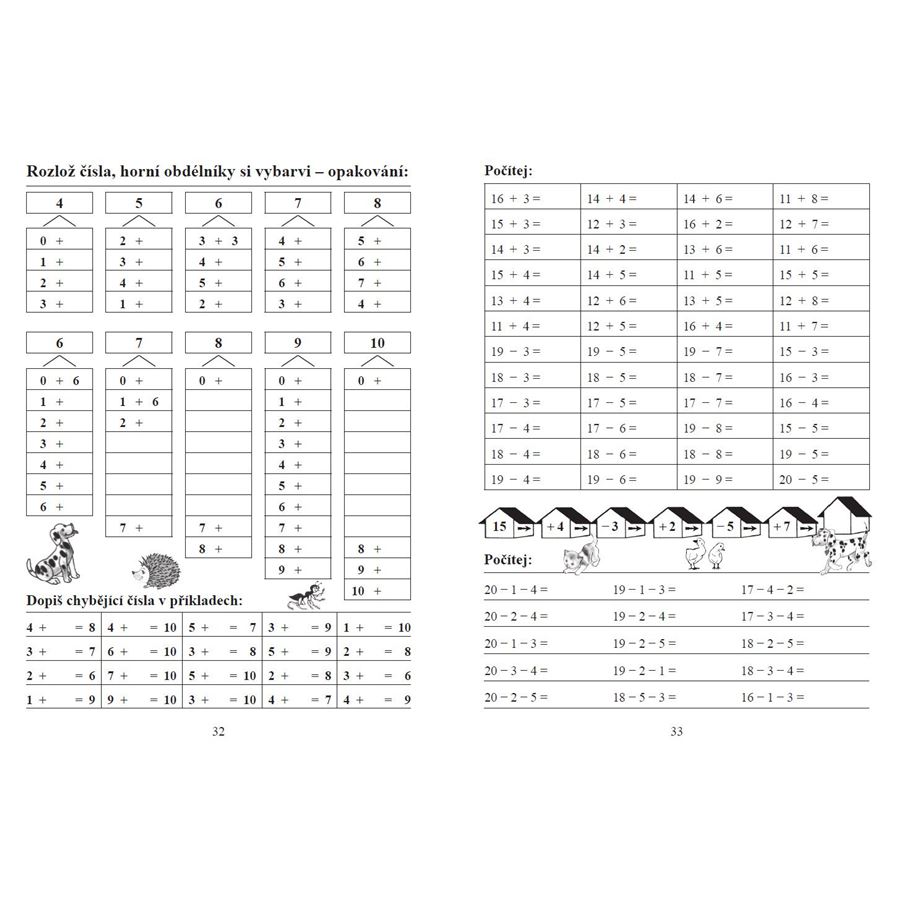 Počítáme do 20 bez přechodu přes desítku - pracovní sešit
