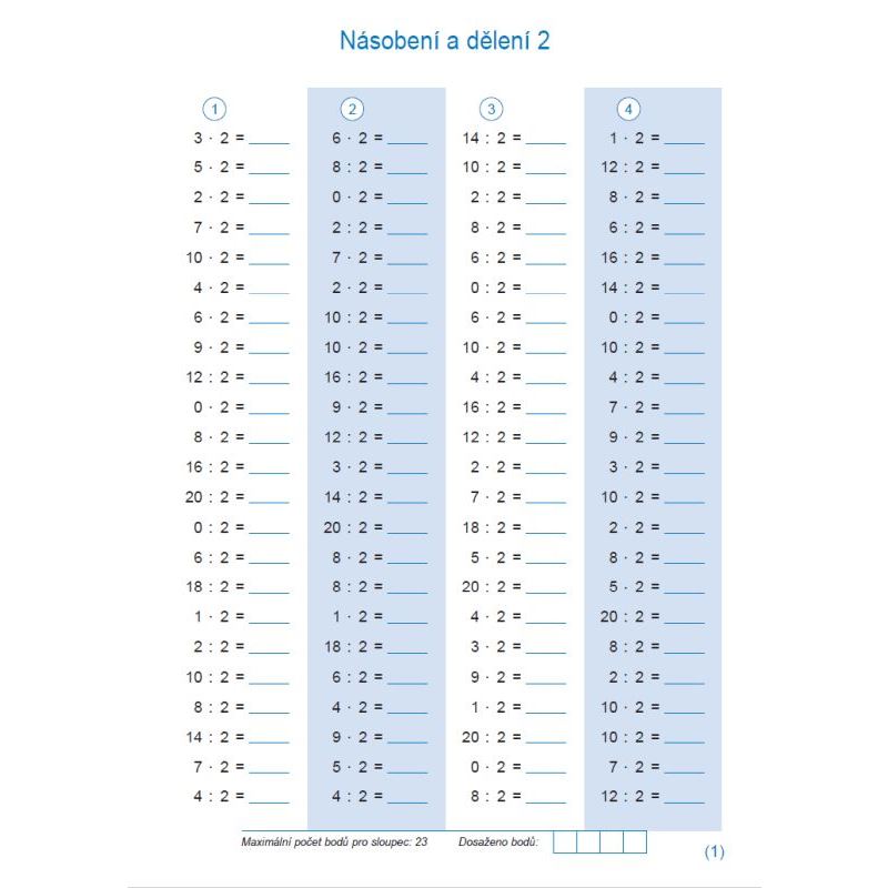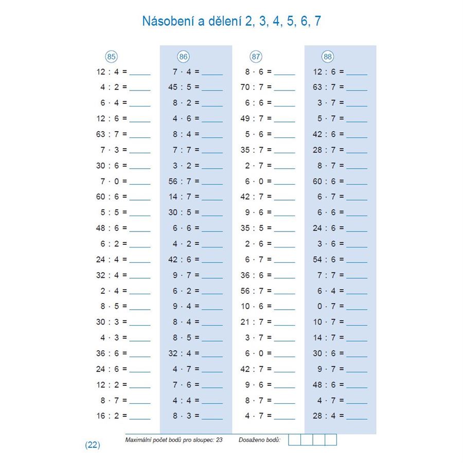 Pracovní sešit k procvičování násobení a dělení 2, 3, 4, 5, 6 a 7 obsahuje