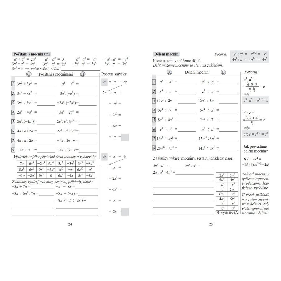 početní výkony s mocninami