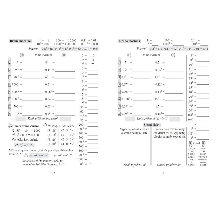 určování druhé mocniny a odmocniny čísel