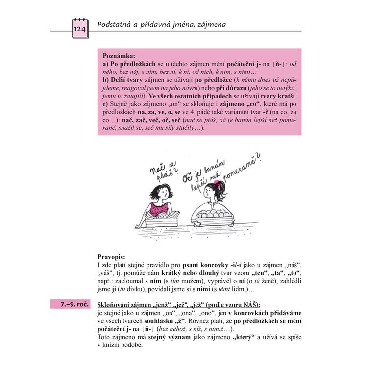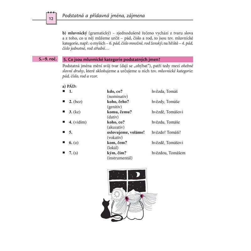 Publikace je určena především žákům 2. stupně ZŠ a středoškolským studentům, některé části mohou využít i žáci 1. stupně ZŠ, zároveň kniha poslouží jako pomůcka pro učitele a rodiče. Kniha je rozdělena do kapitol podle jednotlivých jmen, závěrečná kapitola se věnuje souhrnnému opakování. Žáci se dozví, jak jednotlivá jména v textu poznají, jak se skloňují, jaké mluvnické kategorie se u nich určují, pravopis domácích i cizích jmen a příjmení. Výklad je doplněn řadou cvičení.