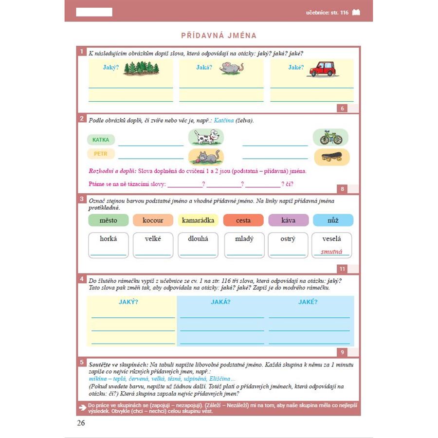 Druhý díl z nové generace Pracovních sešitů k Českému jazyku 3 ALTER obsahuje rozmanitá cvičení ve formě živých slovních spojení a dále křížovky, kris-krosy, osmisměrky, rébusy apod. Cvičení věnována práci s textem podněcují také k samostatné tvorbě různých textů (psaných i mluvených). Na konci každé strany najdou žáci zajímavost nebo různé formy sebehodnocení