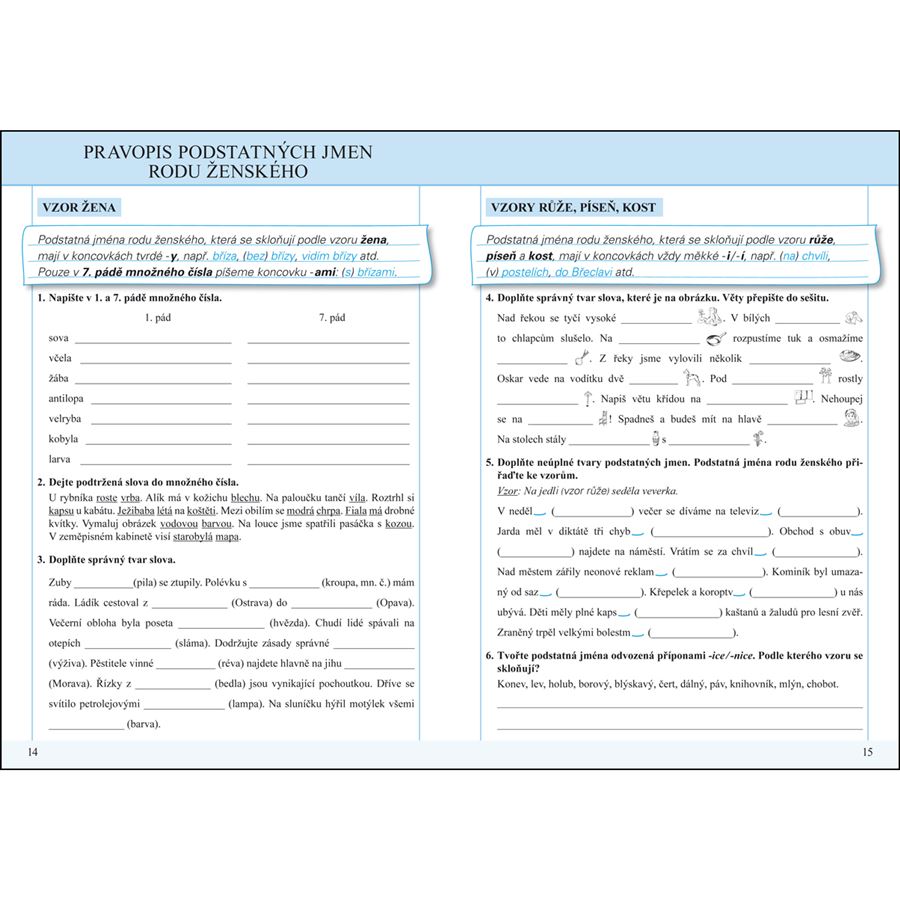 V novém pracovním sešitě si žáci mohou zábavnou formou procvičit skloňování podstatných jmen podle jednotlivých rodů.