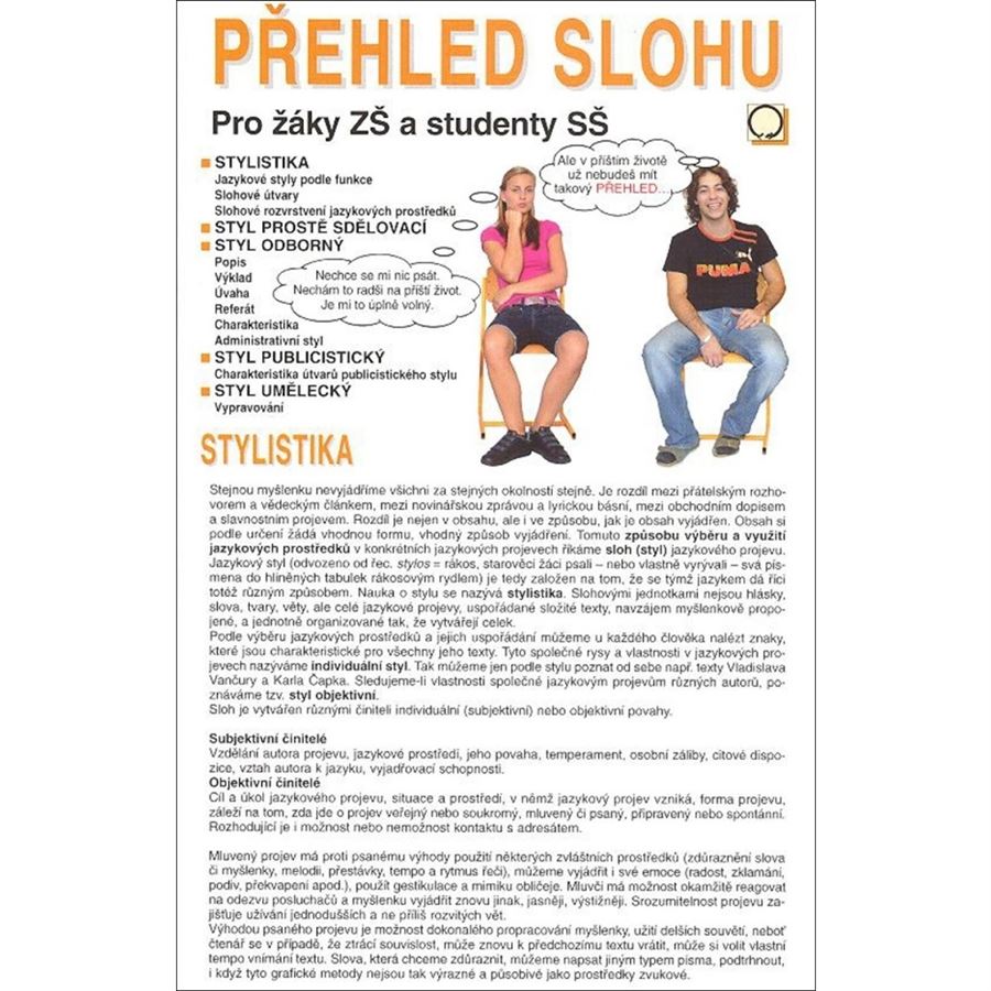 Pro žáky ZŠ a studenty SŠ Publikace obsahuje: stylistiku (jazykové styly podle funkce, slohové útvary, slohové rozvrstvení jazykových prostředků), styl prostě sdělovací, styl odborný (popis, výklad, úvaha, referát, charakteristika, administrativní styl), styl publicistický (charakteristika útvarů publicistického stylu) a styl umělecký (vypravování)